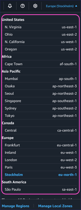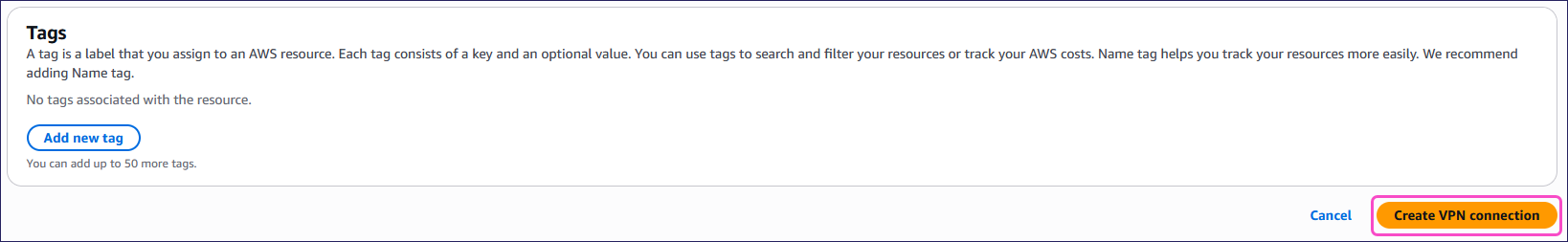 ImportantThe AWS region you choose affects the cost of your VPN connection.