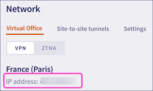 Make a note of the Coro public IP address that displays on the Virtual Office tab: