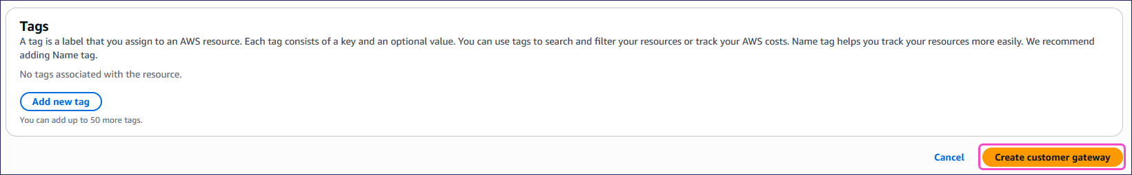 - Customer gateway ID: Select your customer gateway.