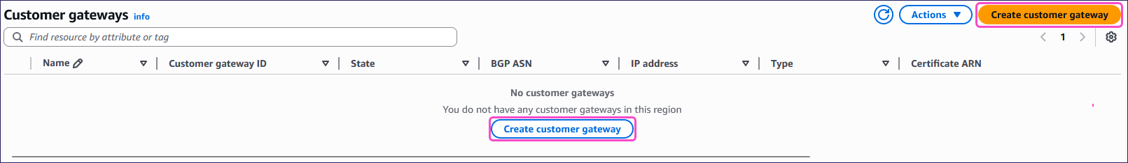 Select Create customer gateway: