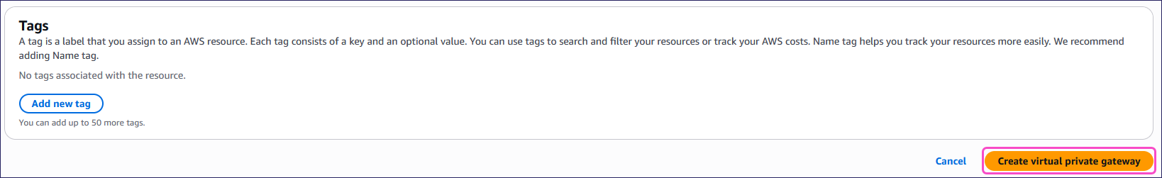 - Virtual private gateway: Select your virtual private gateway.