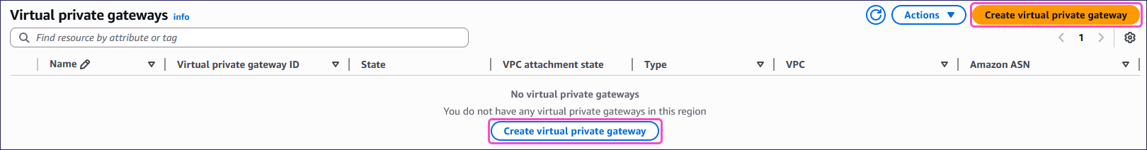 Select Create virtual private gateway: