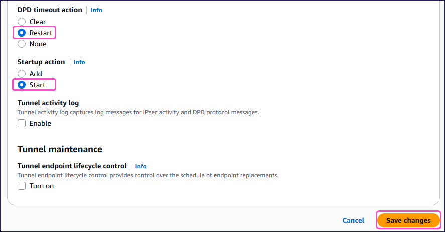 - DPD timeout action: Select Restart.