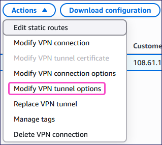 Select Actions > Modify VPN tunnel options: