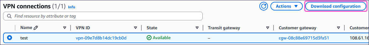 Select your VPN connection, and then select Download configuration: