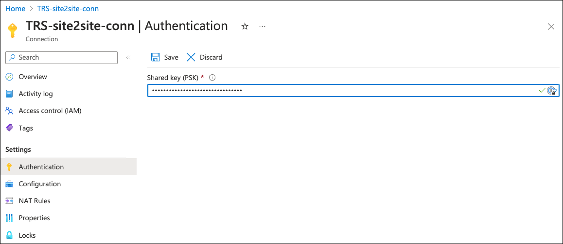 - Shared key - see Creating a site-to-site VPN.