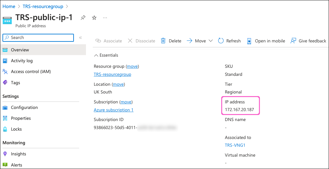Keep a note of the Public IP address name for configuration in Coro later.