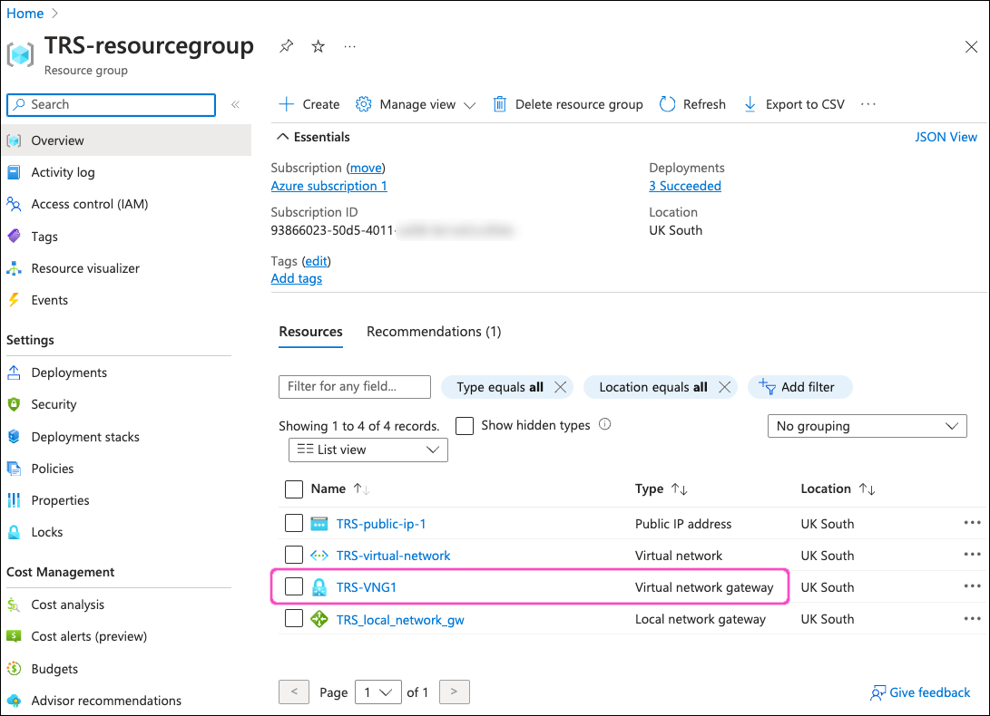 After a short wait, Azure deploys your local network gateway.