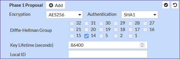 - Phase 1 encryption: Select AES256-SHA1-D14.
