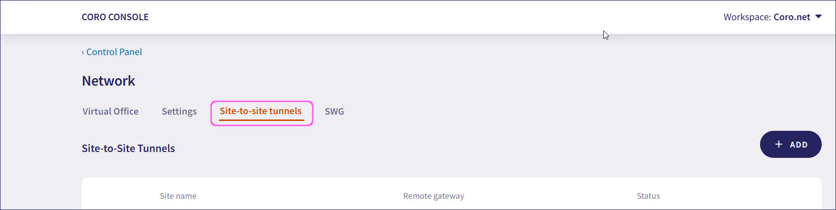 - Go to Control Panel > Network > Site-to-site tunnels.