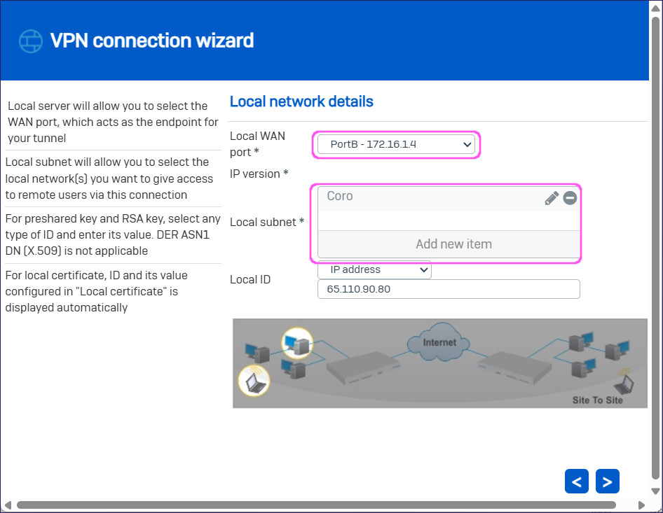 Local subnet: Select or add your local subnet for the VPN tunnel: