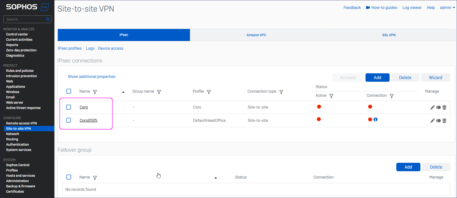 Configuring a site-to-site VPN tunnel with Coro Network and Sophos