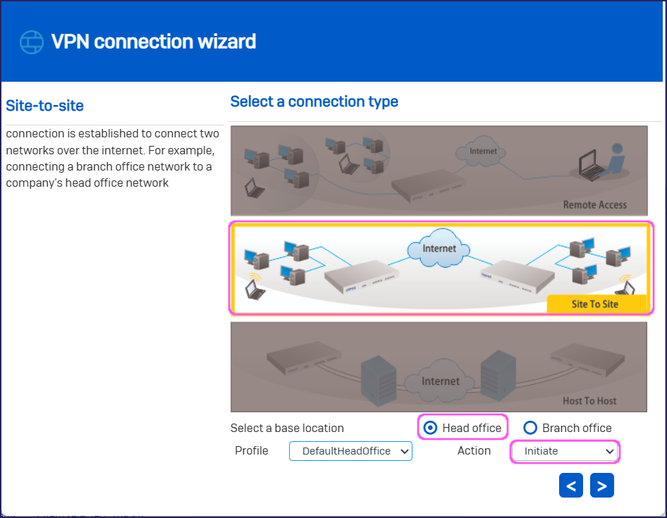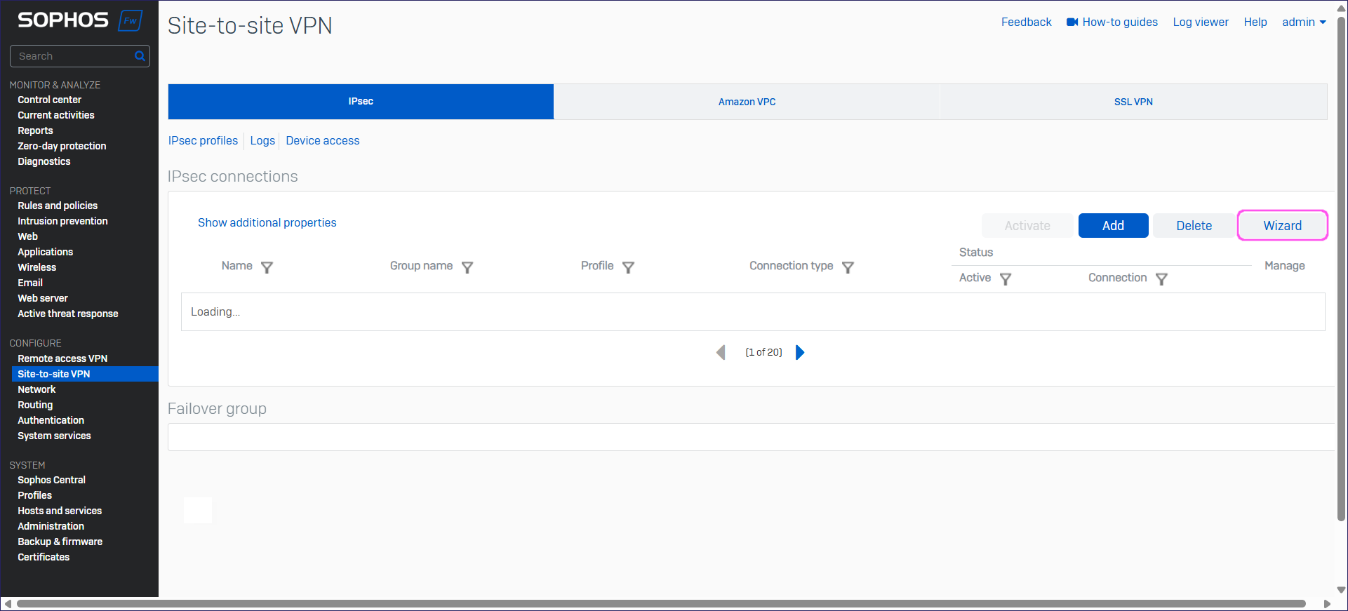 - Go to Site-to-site VPN > IPsec and select Wizard: