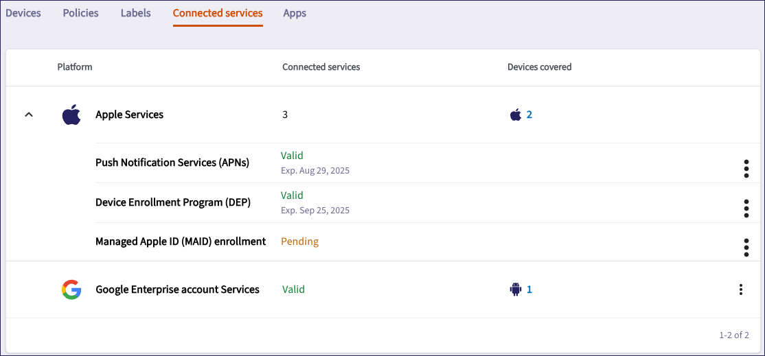 Locate Device Enrollment Program (DEP), then select the adjacent three-dot menu. Choose from: