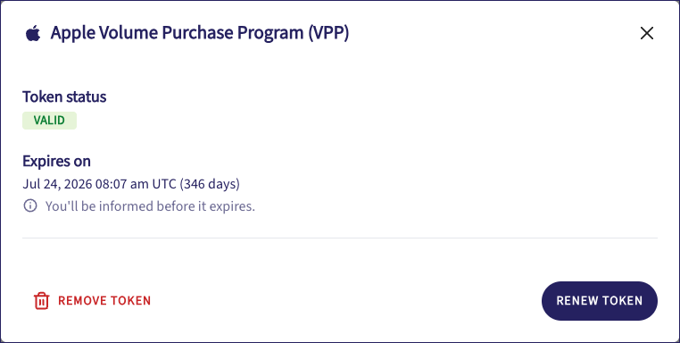 Locate Volume Purchase Program (VPP), then select the adjacent three-dot menu. Choose from: