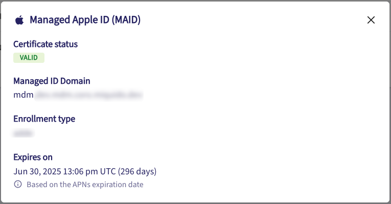 Locate Managed Apple ID (MAID) enrollment, then select the adjacent three-dot menu. Choose from: