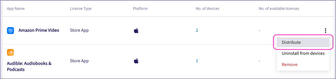 ImportantIf you are deploying a paid app synchronized from your VPP service, make sure the number of free licenses exceeds the number of proposed devices.