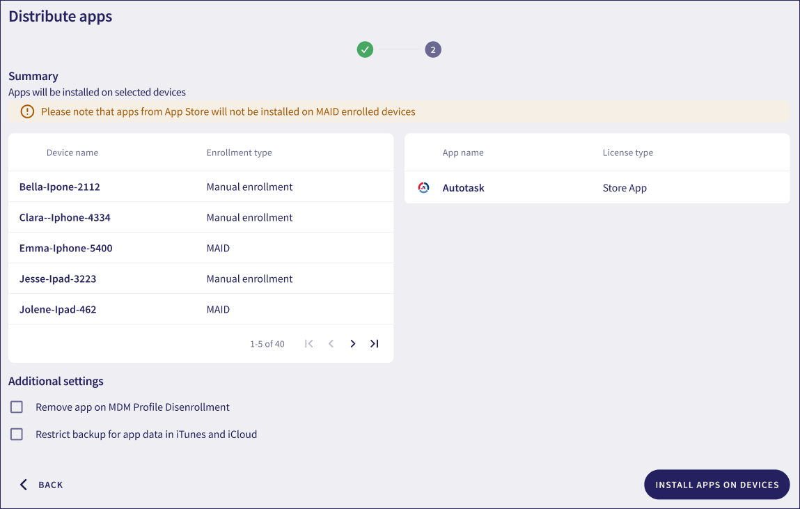 Deploy or uninstall apps on applicable devices.