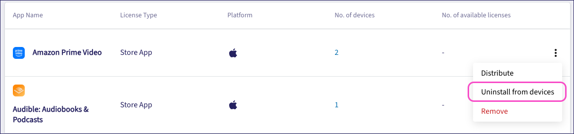 From the three-dot menu, select Uninstall from devices: