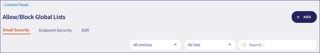 Use the Email Security, Endpoint Security, and EDR tabs to create and manage global allowlist and blocklist rules.
