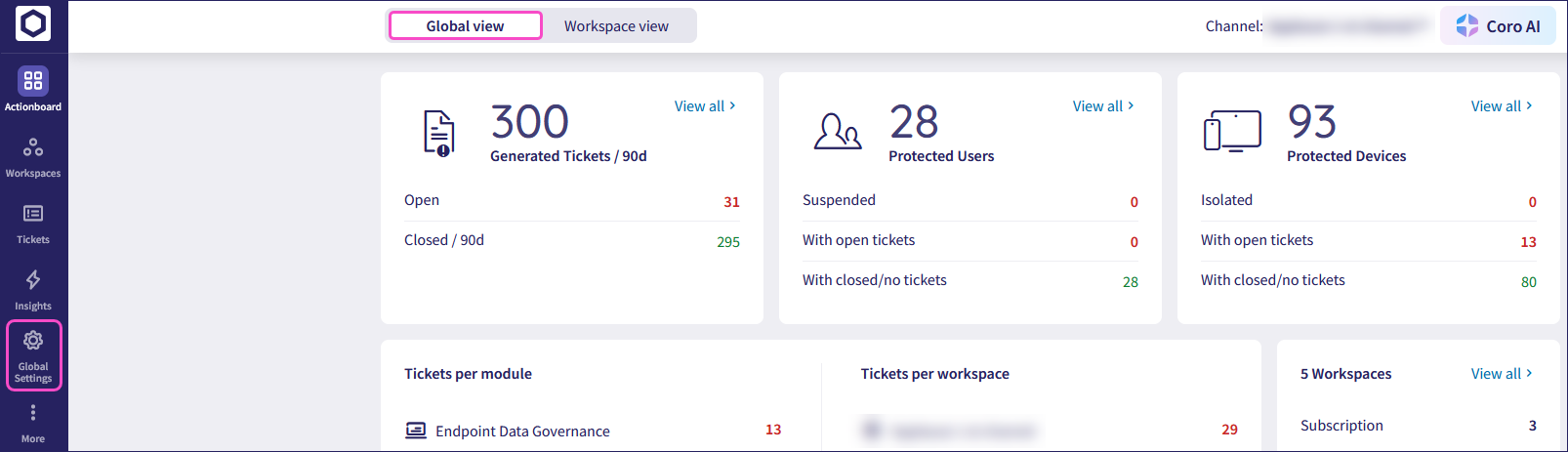 Coro automatically applies the rule to the channel workspace and all descendant workspaces.
