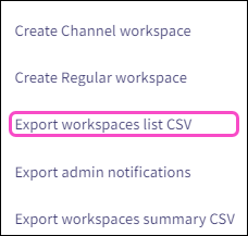 Select Export workspaces list CSV: