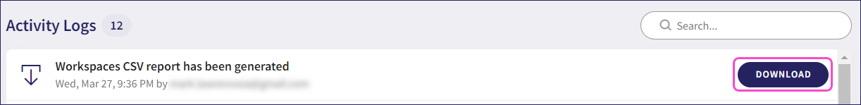 Managed Service Provider (MSP) admin users with sufficient permissions can export the workspace list to a CSV file. Admin users download the exported CSV file from the activity log of the workspace belonging to the MSP admin user who initiated the export.