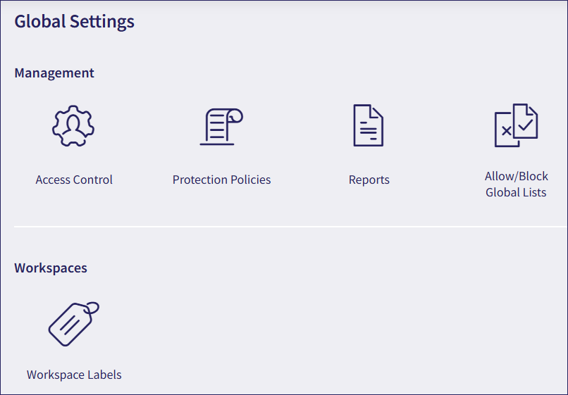 Use the Global Settings page to manage access and organization across your channel workspace and its descendant workspaces. This includes setting up MSP admin users and MSP roles, and labeling workspaces for easier management.
