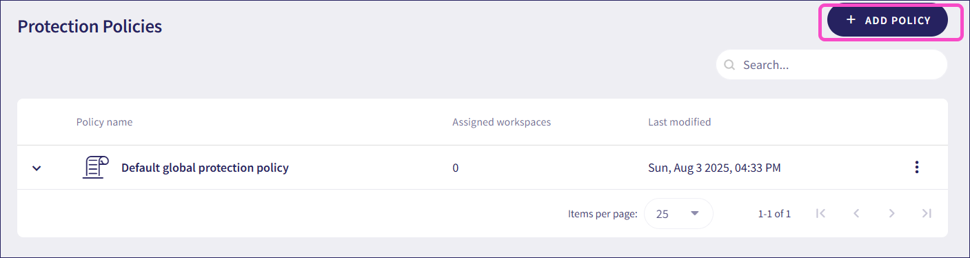 From Protection Policies, select + ADD POLICY:
