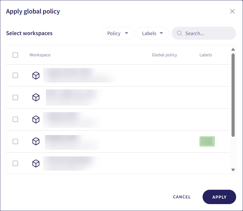 Select the workspaces for which the policy should apply, then select APPLY.