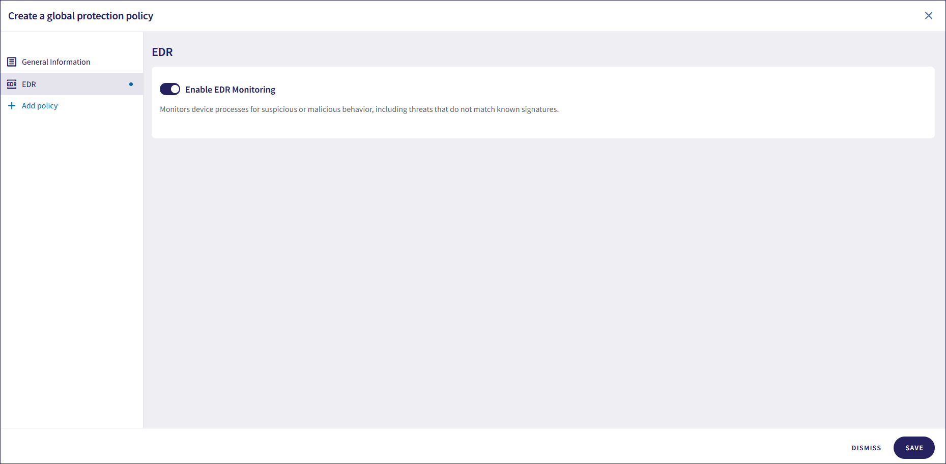 If you add the EDR section, enable or disable EDR monitoring:
