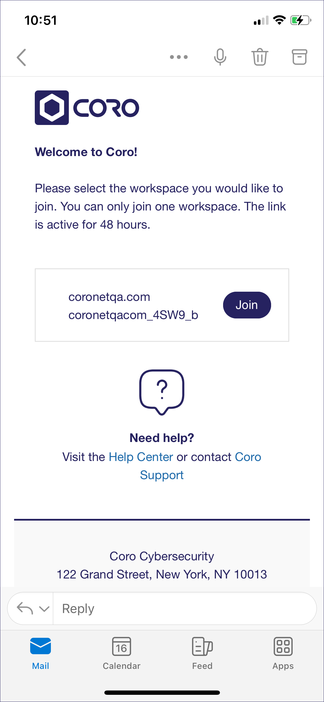 Download the Coro Endpoint Protection app from the link sent by your admin user.