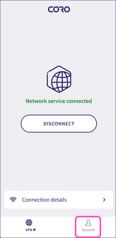 Users with devices capable of manual disconnection can manually connect to or disconnect from the service by selecting CONNECT and DISCONNECT in the app: