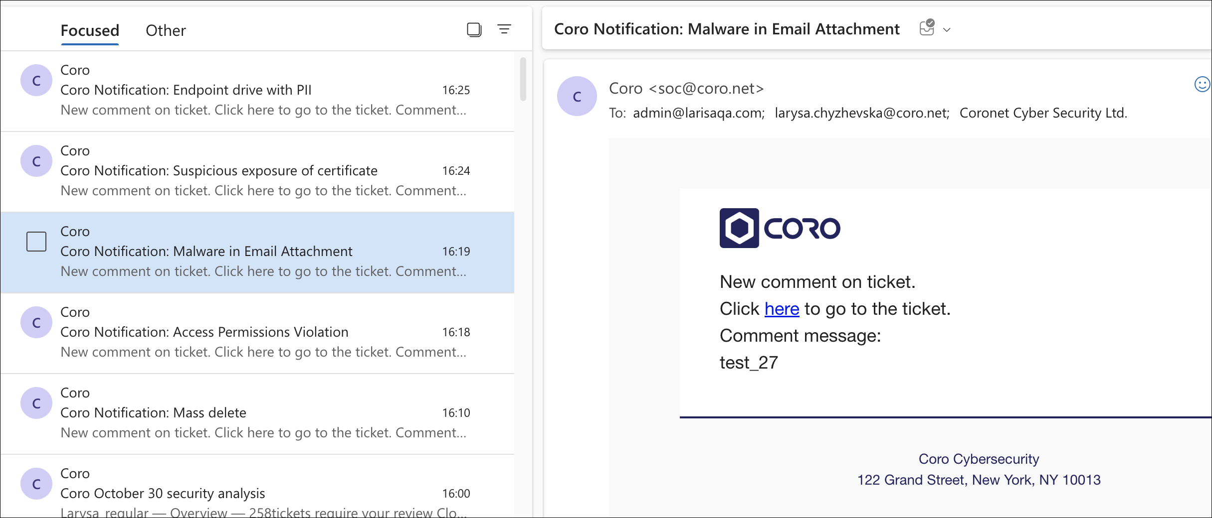 SOC team members can reply to this email and continue the ticket related communication:
