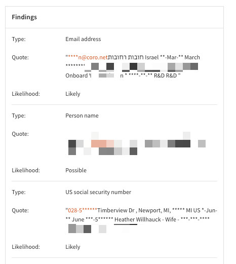For example, PII policy violations can appear similar to the following: