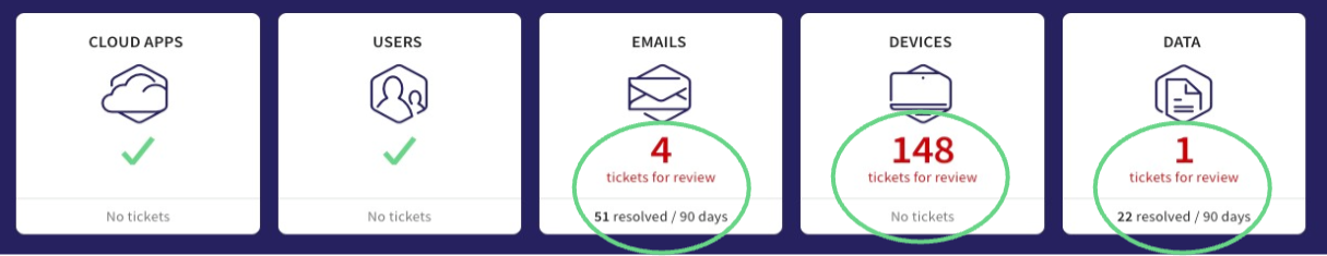 - After created in the system, tickets are sorted and assigned to their relevant area: email, data, devices, users, cloud apps.