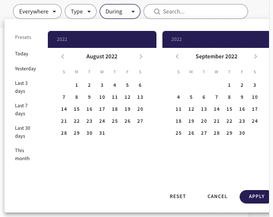- free text search is available to find relevant activity faster