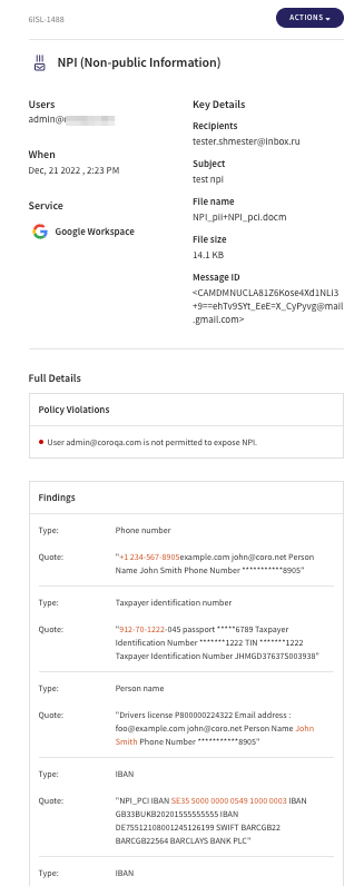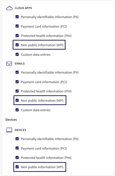 In support of the GLBA regulations, Coro now supports data governance and data loss protection for sensitive data classified as nonpublic personal information (NPI).