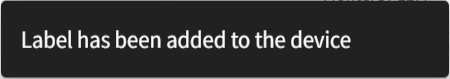 The label is added to the device, and a confirmation message is displayed:
