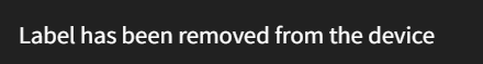 The label is removed from the device, and a confirmation message is displayed: