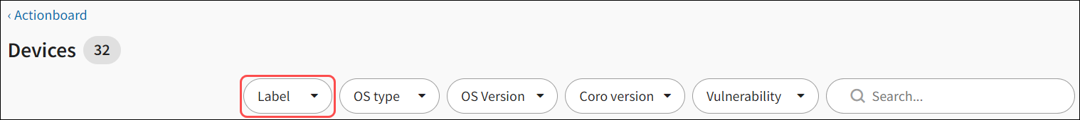 Once you have added labels to devices, you can use the Label filter to filter for devices by label names: