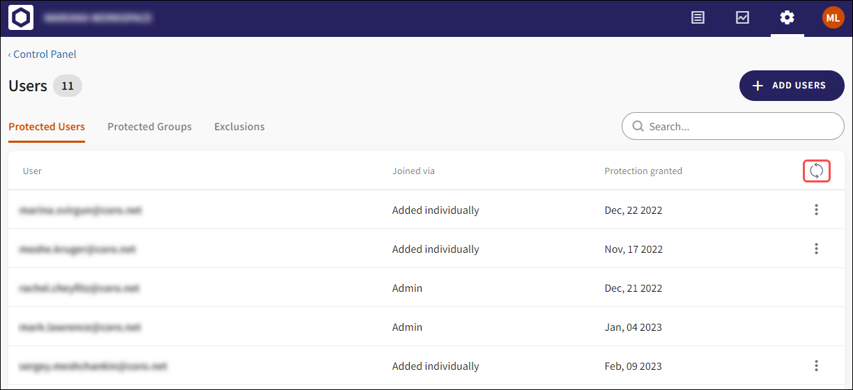 A Synchronize users from cloud apps button has been added to the Protected users and Protected Groups tabs. This helps you ensure that cloud application users and groups who are added to protection are synchronized within seconds.