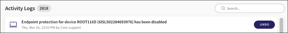 When a device is disabled from protection, the Activity Log now displays in the following format: