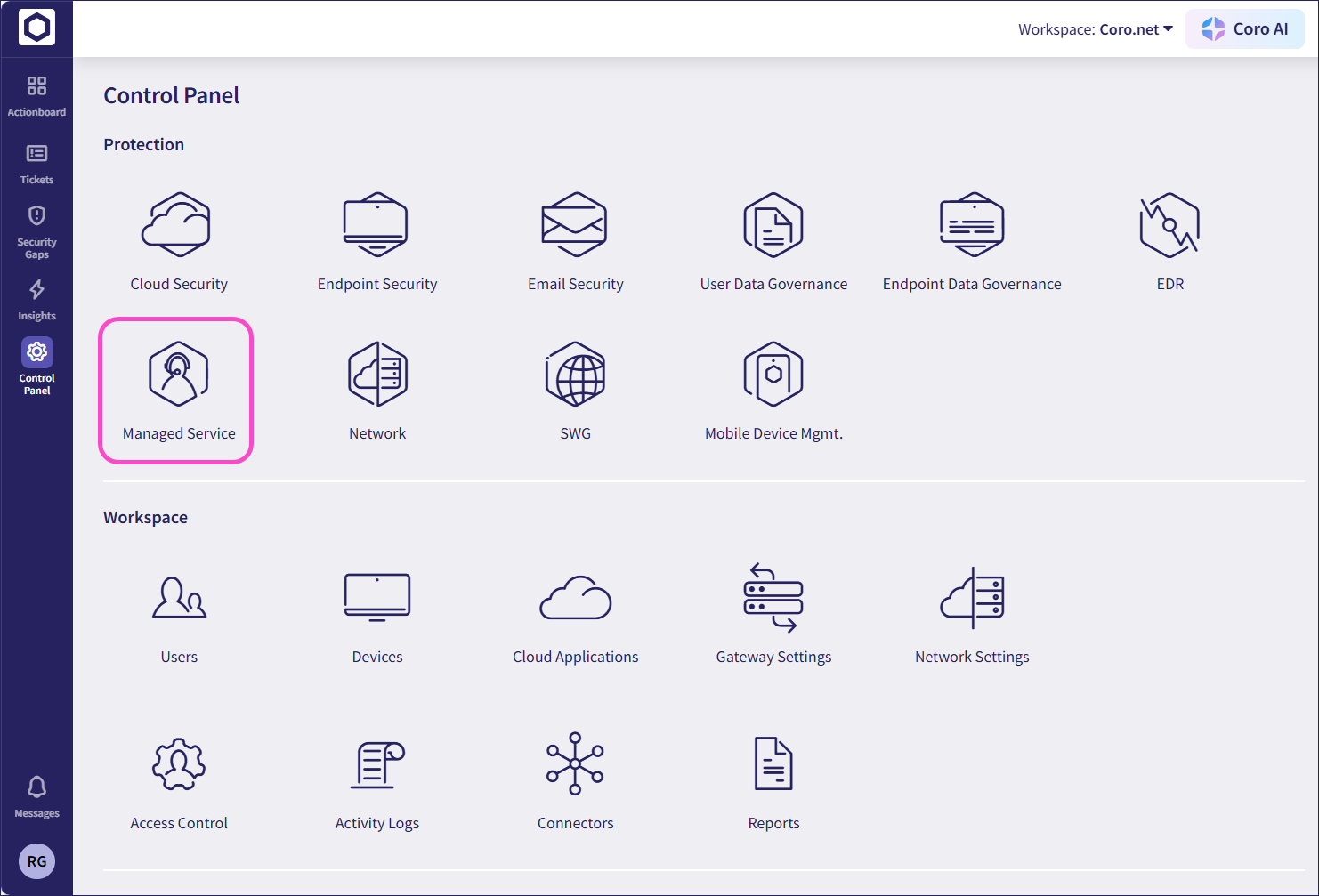 Admin users with sufficient permissions can choose how to manage remediation. Managed service contacts can be notified by Coro according to their specified notification level and remediate issues themselves, or Coro can remediate issues for you and update managed service contacts about any actions taken according to their specified notification level.